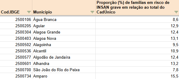 Com base nos dados do CadInsan desenvolvemos a análise específica  da situação paraibana promovendo uma compreensão mais detalhada da situação da insegurança alimentar na região e no Estado.